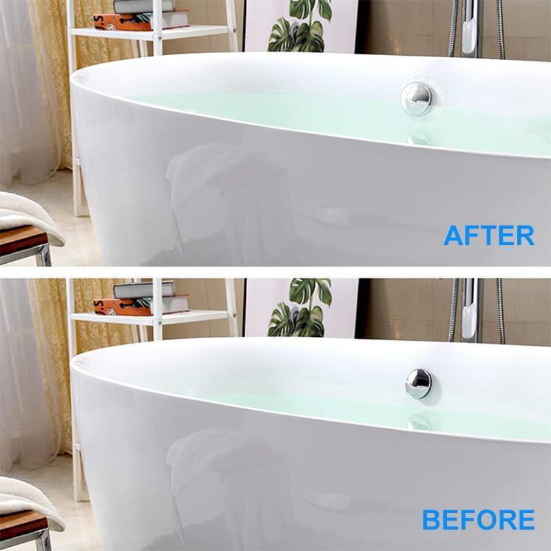 - Unlike drain cover plugs, the Bottomless Bath essentially moves the overflow drain "up" a couple inches rather than completely blocking it.