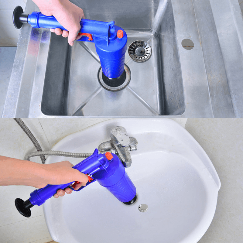 - EASY TO USE. The drain blaster uses the power of high-pressure compressed air to blast away the toughest clogs in your drains in just seconds.Just pump the drain blaster and squeeze the trigger, the clog is cleared instantly. Much faster than traditional plungers and snake and No more waisting time on drain openers.