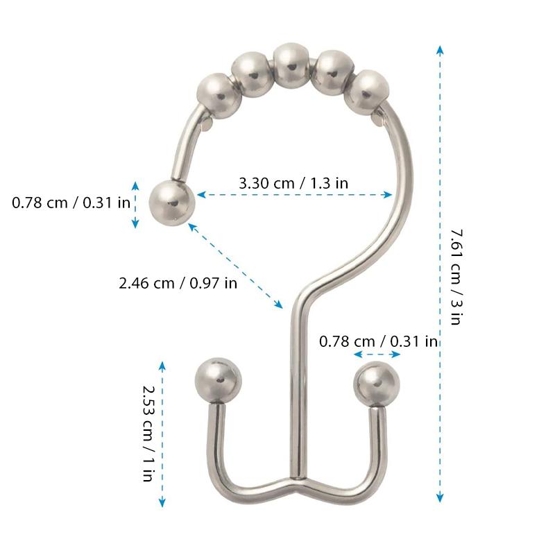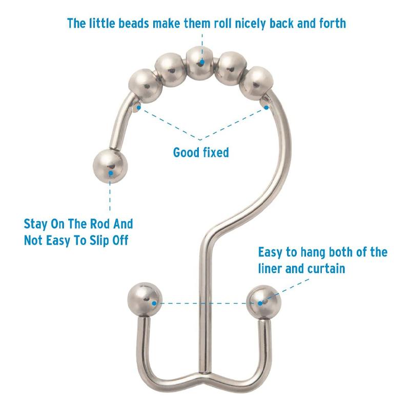 Smooth gliding -Engineered spherical roller balls of shower curtain hooks can glide smoothly and fast across shower rod.