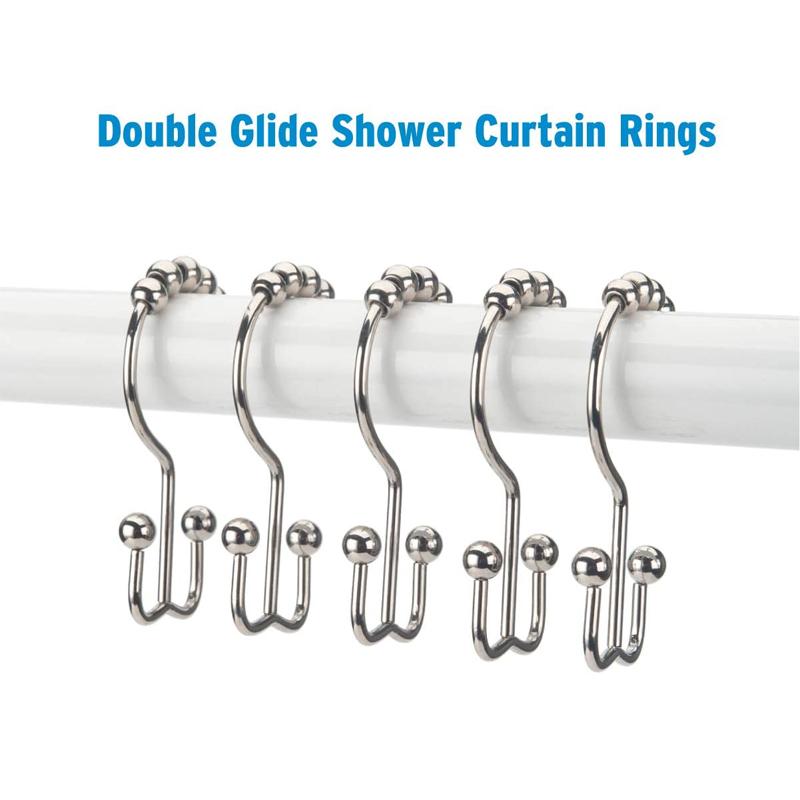 High quality metal - These double glided shower curtain hooks are made of high quality and selected metal, which is resistant to rust effectively.