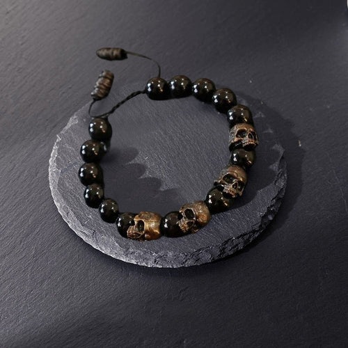 The Sterling Silver Skull Army Onyx Bead Bracelet