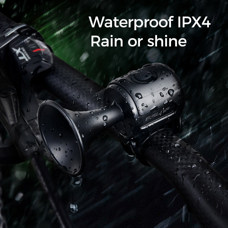 MINIMALIST DESIGN: Just press to sound, simple and quick to let passersby know. The trumpet shape is stylish and loud, IPX4 level waterproof, not afraid of light rain during riding,but do not recommend to use or put under the heavy rain.