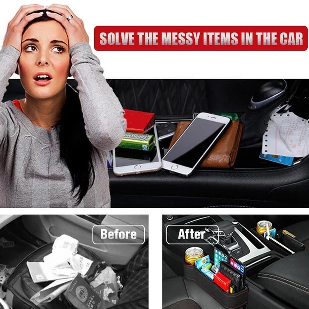 - Prevent Driving Distraction - This car seat catcher will save you countless times from digging between the seat and center console to find your dropped cell phone,cards, money, keys, etc. This seat caddy catches items before it dropped between the gap. It also keeps your important things with reach and organizes your phones,keys,pen,ipad and more.