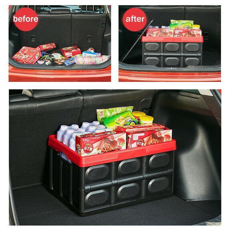 - STURDY CAR TRUNK ORGANIZER - collapsible storage box is made of high-quality PP material, tough enough to withstand any wear and tear during the vehicle use. It fits in your trunk to help you organize the things you need