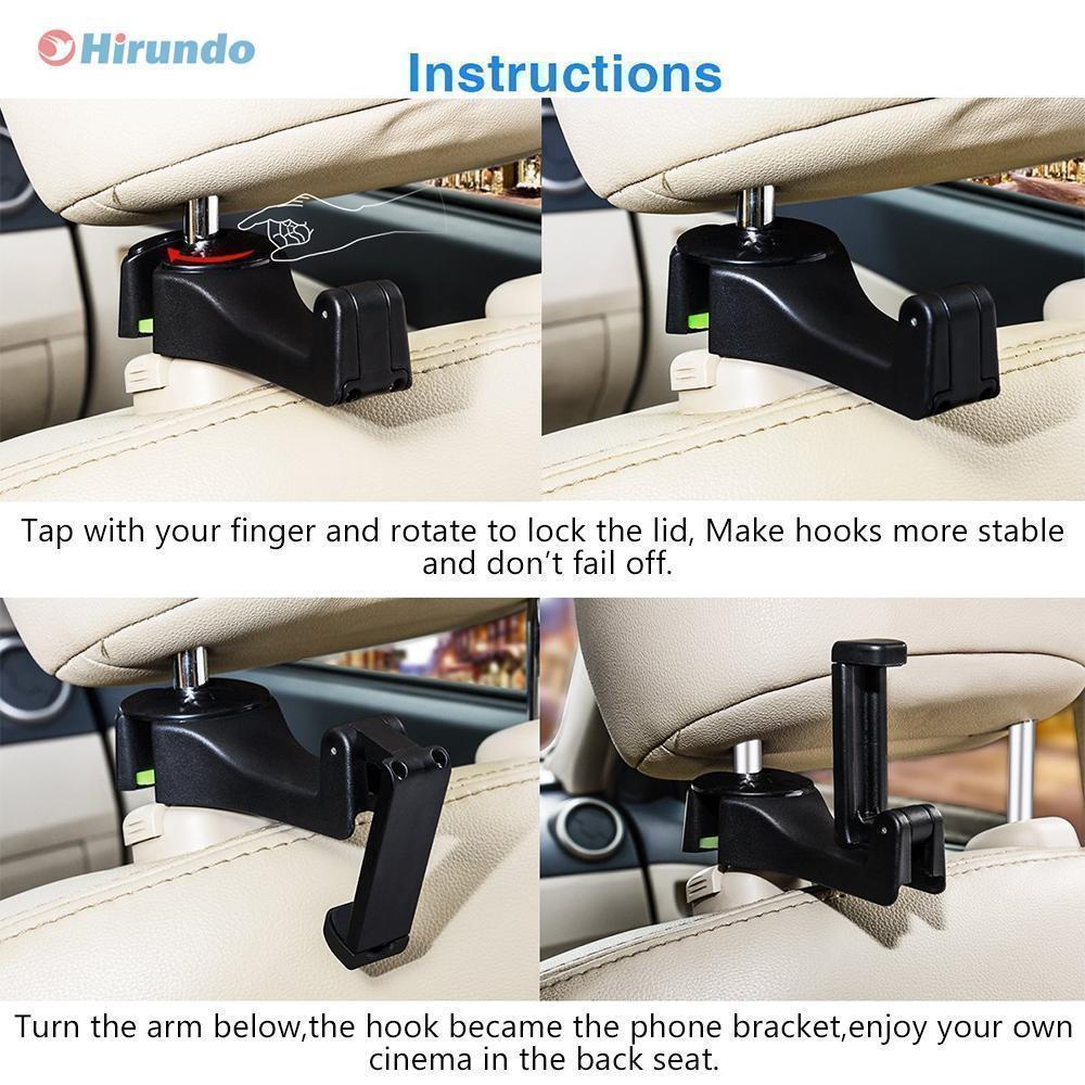 - Space Saving - The hook installed on the car headrest pole helps to hang clothes, handbags, umbrellas, water bottles, kid's toys, baby supplies and so on. Save seat space and prevent bags falling off when turning.Organizes back seat clutter and opens up seat, floor and leg room.