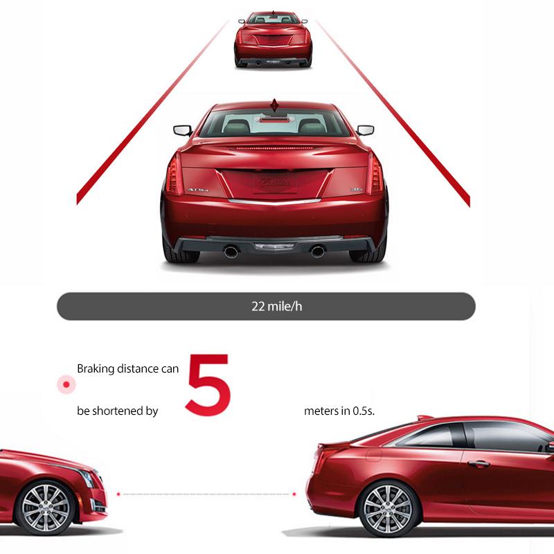 Three light modes: white light (Normal brake); blue light (Quick brake); yellow flash light (Emergency brake).