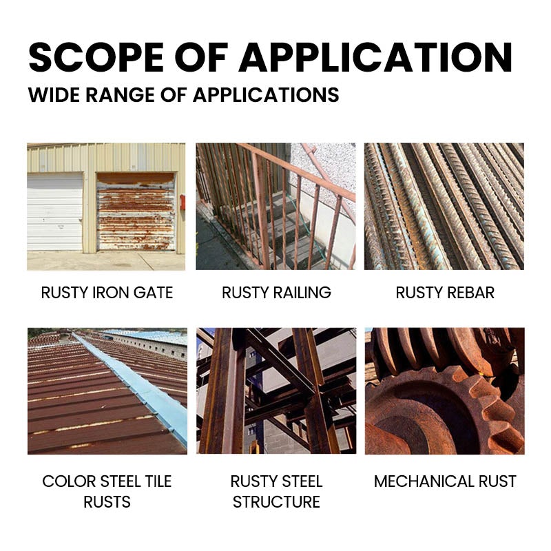 - [Protect Iron and Metal Surfaces]-Ā It can quickly andĀ easily remove rust and restore the original primer colorĀ of metal objects. It revives and protects iron and metal surfaces on automobiles, car chassis, dumpsters, equipment, railings, chains, etc.