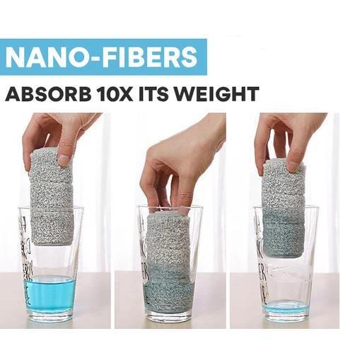 - Super-absorbent nano-fibers absorb up 10 times its weight in liquid