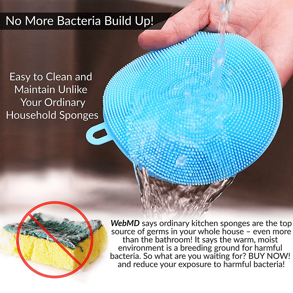 - Easy to clean and to keep dry - They can be easily sanitized - unlike regular sponges that are bacteria magnets.The silicone dish scrubbers can rinse clean fairly well and dry thoroughly.They will be good as new when they get clean and dry, and they can easily be popped in the dishwasher or even boiled to get clean.
