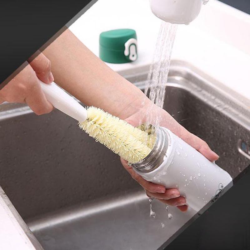 Curved end design brush head gives hard-to-reach corners a thorough cleaning. Effectively clean baby bottles, milk bottles, dishes, sports bottles, beer bottles, wine tumblers, long cups, vacuum mugs, and even vases!