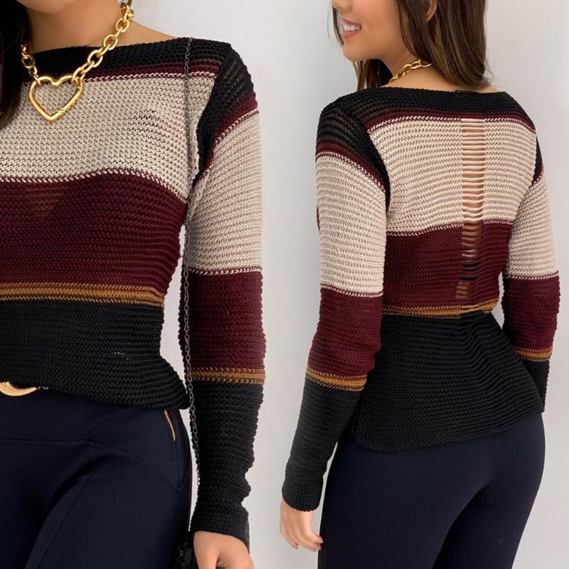 - Pattern Type: Colorblock, Knit, Ladder Cutout