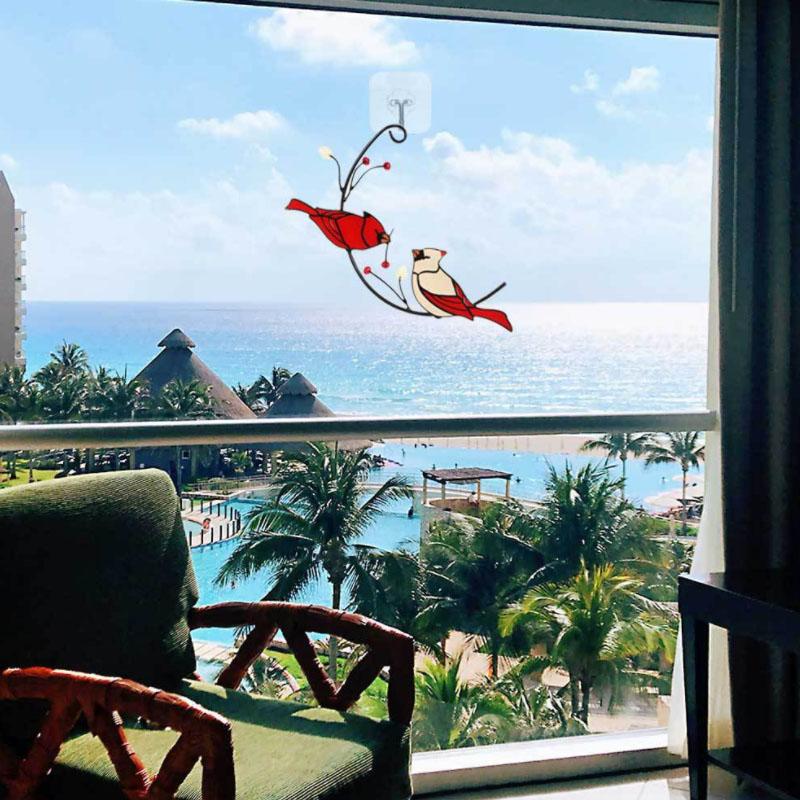 - 🐦Bird Stained Glass Ornament:If you place it on the windows or walls, this bird suncathcher will add colorful and fresh elements to it. red bird couple made the hanging pendant is attractive and stylish.