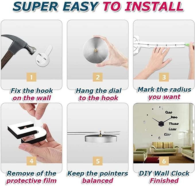 - Easy to hang: Easy to install, can be glued repeatedly. Glue the wall clock according to the drawings. It will not damage the wall.