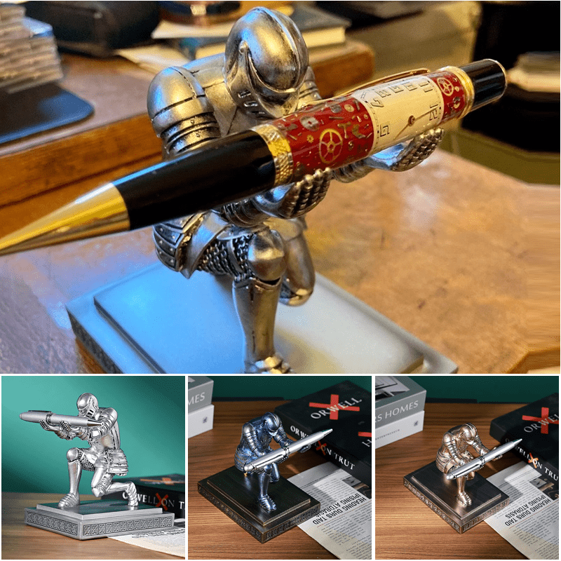 KNIGHT PEN HOLDER : Unique design, the appearance of this pen holder is a knight kneeling on one knee and raising his hands, which is very cool and special.