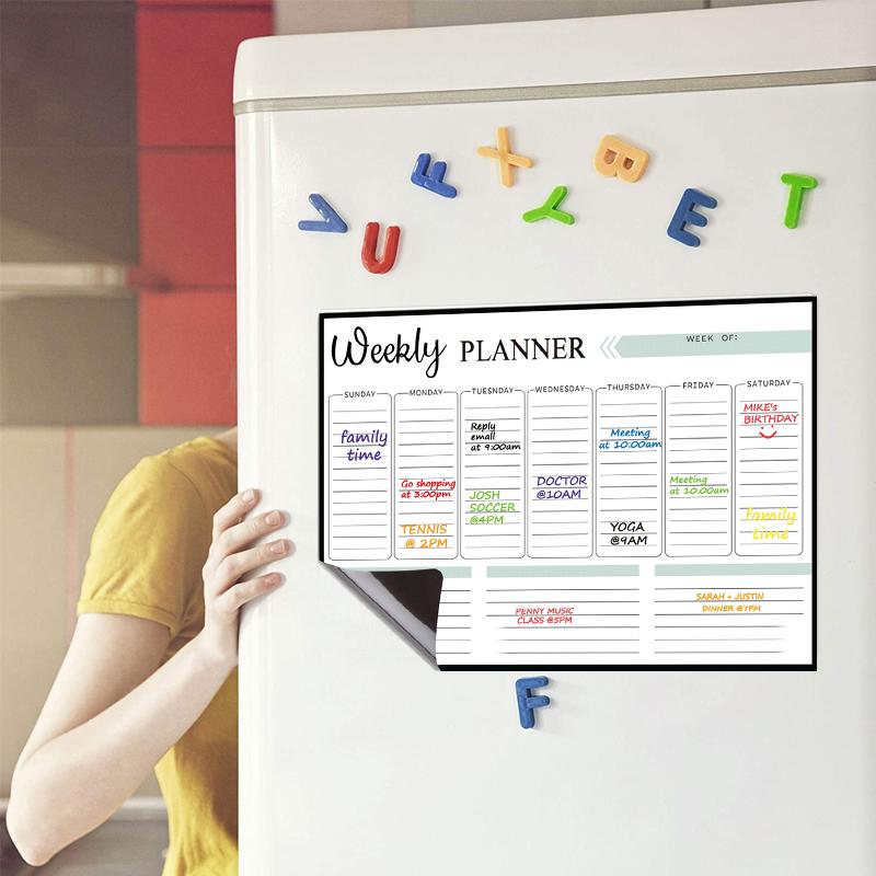 LONG LASTING STAIN RESISTANT PERFORMANCE: With edge cutting material science, this fridge calendar has a stain resistant high-performance PET surface. You can erase for countless times without any smudgy "ghosting” or staining