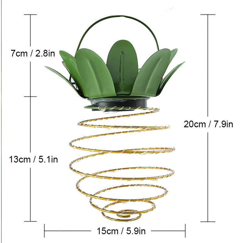 - Power by Solar - This telescopic metal coil pineapple lights is solar powered, energy saving, led lights work last up to 6 - 8 hours each time when fully charged.