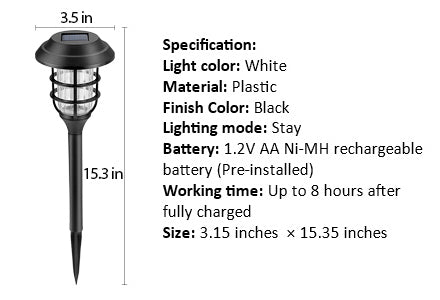 - 【High Quality】 The solar powered garden lights can glow for up to 8 hours and provide clear illumination brightness, because they are made of polysilicon solar panels, rechargeable batteries and corrosion resistance ABS plastic.