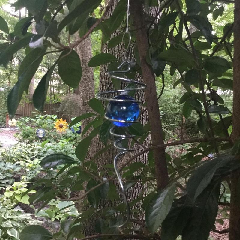 The clear glass orb gives the appearance it is moving up and down as the tail spins The visual effect of the gazing ball/orb floating on air.