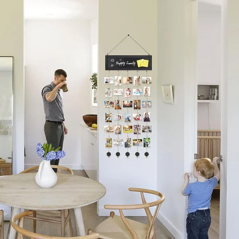 🐬Perfect Way to Display Multiple Photos: Simple design collage photo frames with 30 clips, 5 hemp rope, 3 magnets and 1 blackboard, you can cut the length of hemp rope as you want, which satisfies simple DIY design. What's more, it's easy to change the picture or cards with the 30 clips.