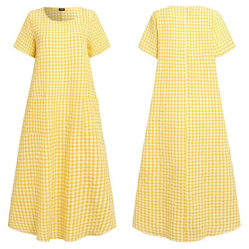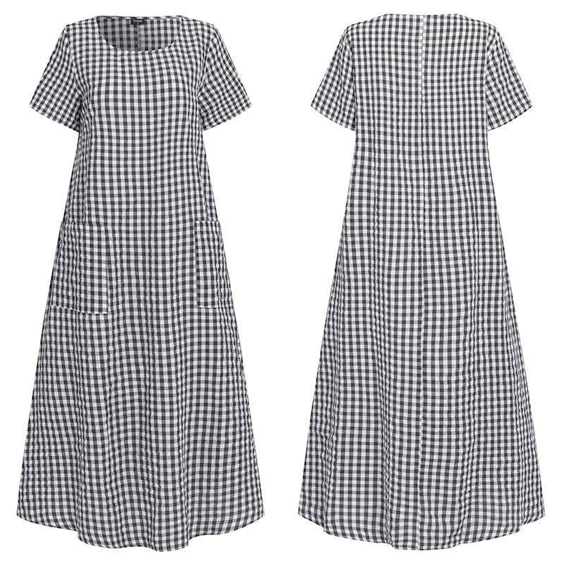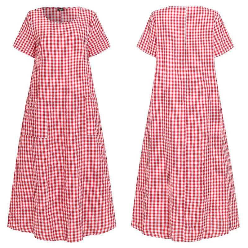 - Design: This Loose Swing Mini Dress With Cute Plaid Print, Flounces On The Hem And Two Handy Side Pockets, Which Are Perfect Match For This Dress. In Addition, The Button At The Back Also Make It Easy To Put On Or Take Off. Simply Outfit In Summer!