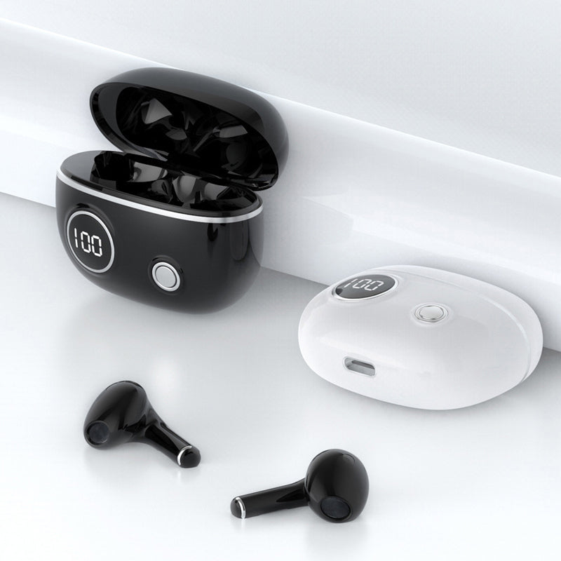 【LED Battery Display & 60 Hours Playback】Double digital LED power display on the outside of the case to show the battery level of the charging case and earbuds. When charging, the LED light starts flashing from 1 to 100. The earbuds will start charging when you put them in the case. The 470mAh battery capacity charging case can provide 6 full charges for both earbuds, and each earbud can last for 5 hours on a single charge. Therefore, you can enjoy 60 hours of music time by using it in turn.