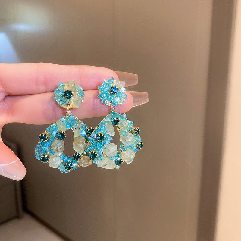 Diamond Encrusted Crystal Fan-Shaped Ginkgo Leaf Earrings