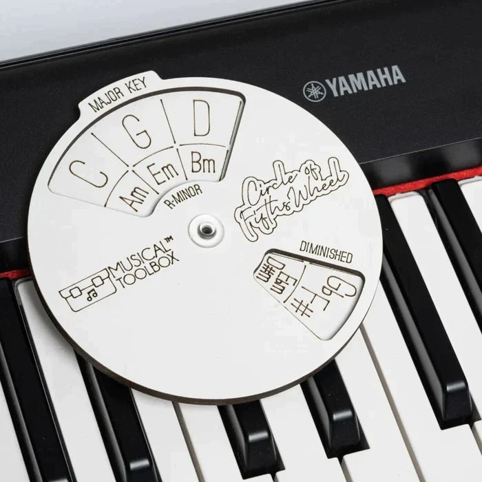 - Crafted and engraved from 2 pieces of 3mm White Faced MDF this tool allows rising musicians to determine a major or minor key and gives songwriter performers the easy means to know what notes and chords compliment a particular key.