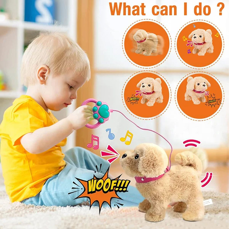 šGreat Fun: Adorable dog walks, barks, stretchs and wags its tail like a real puppy, it will bark when you tap its head. Puppy can perform tricks and walk on carpets, hard wood, etc.!