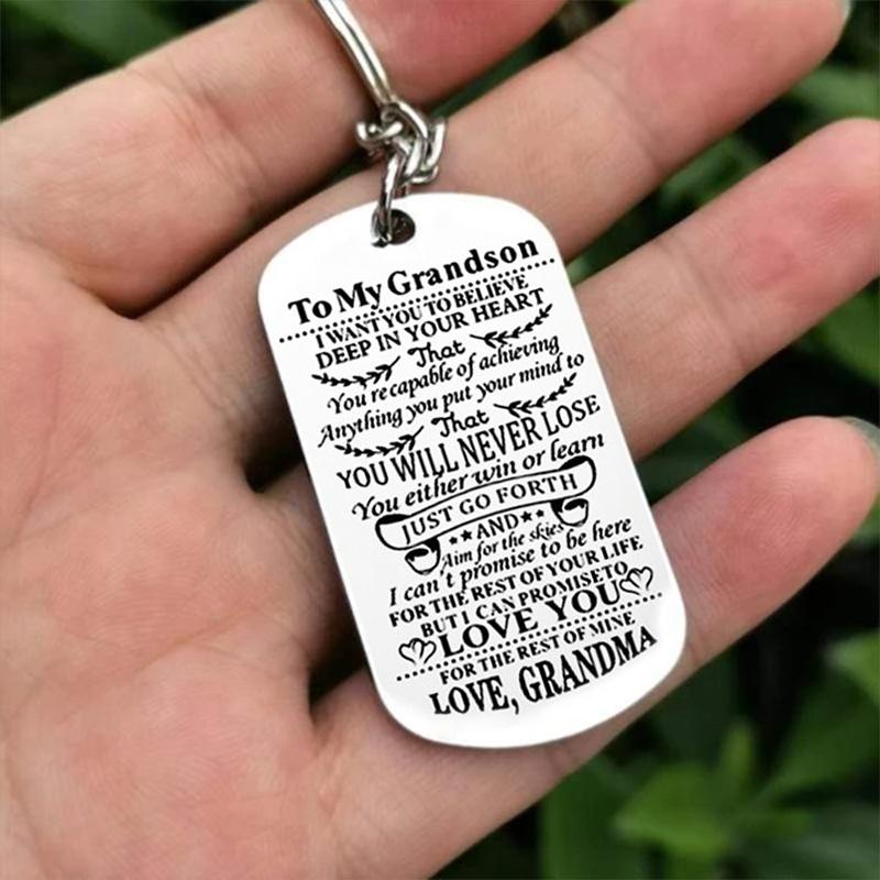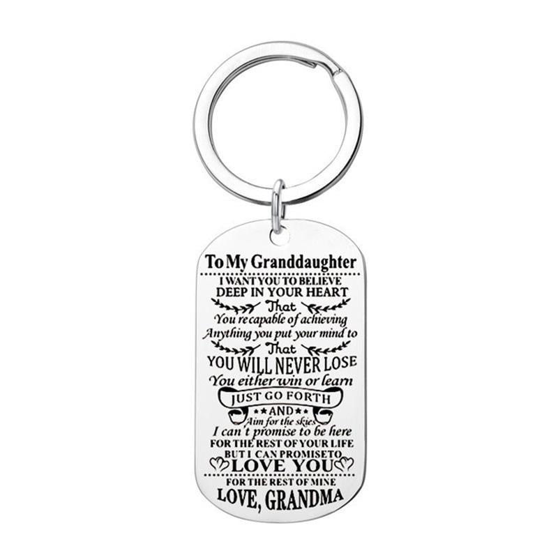 This pendant keychain is the best gift to grandsons/granddaughters as grandma or to son/ daughter as mom/dad,it is the best way to express love. The message is laser engraved to ensure that it will never fade away. Keeping your loving words at his side forever.💞