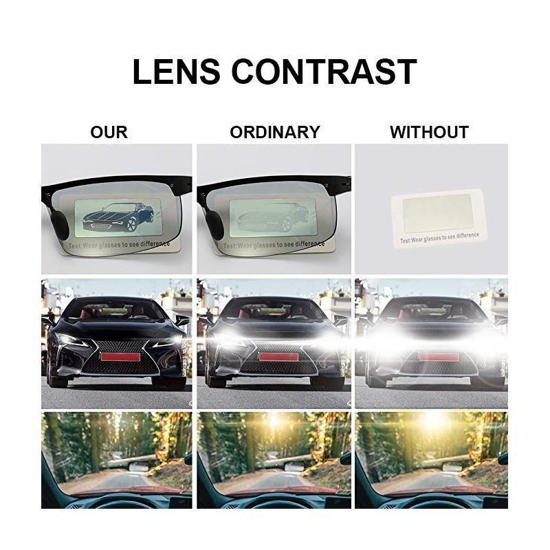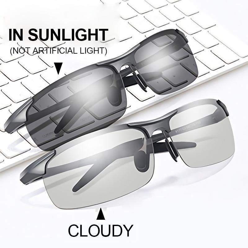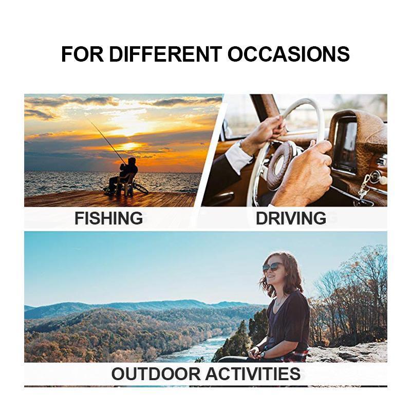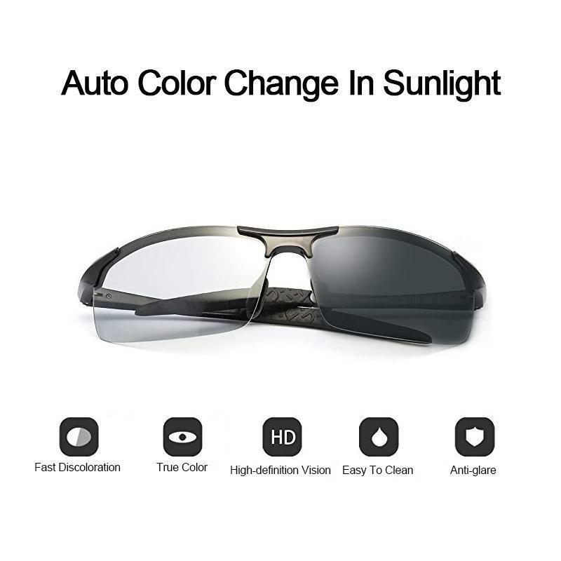 Our sunglasses are made of special photochromic polarized lenses. When driving at night or into a dark environment, the lenses are lightcolored transparent to enhancing the visibility while effectively reducing the glare. During the daytime, it can effectively filter the strong light, enhance the visual sharpness, reduce eyes fatigue, and keep the eyes always in the most comfortable state of outdoor activities.