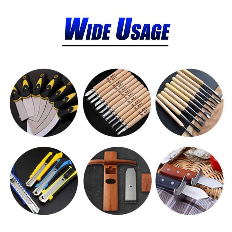You can trust that this sharpening jig will be around for the long haul, as the roller wheel is crafted of hardened steel which will never wear down or develop flat spots.