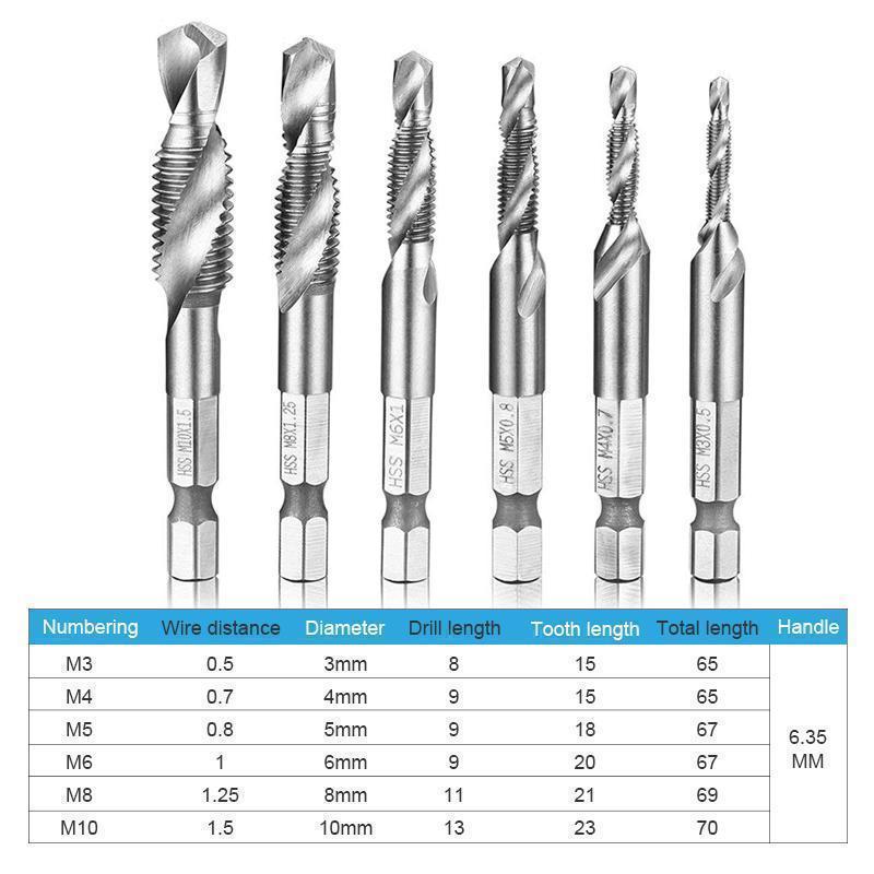 6 pcs * Domom® Metric Tap Drill Bits (M3 - M10)