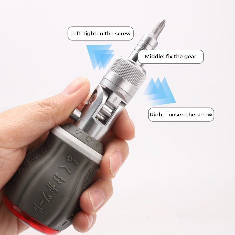 Ratchet Design: Three gears, tighten the screw on the left, loosen the screw on the right, and fix the gear in the middle, which is generally used for screwing wood products