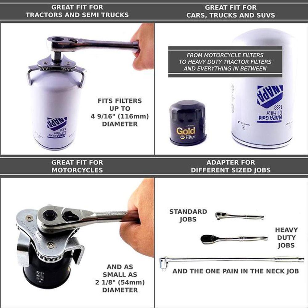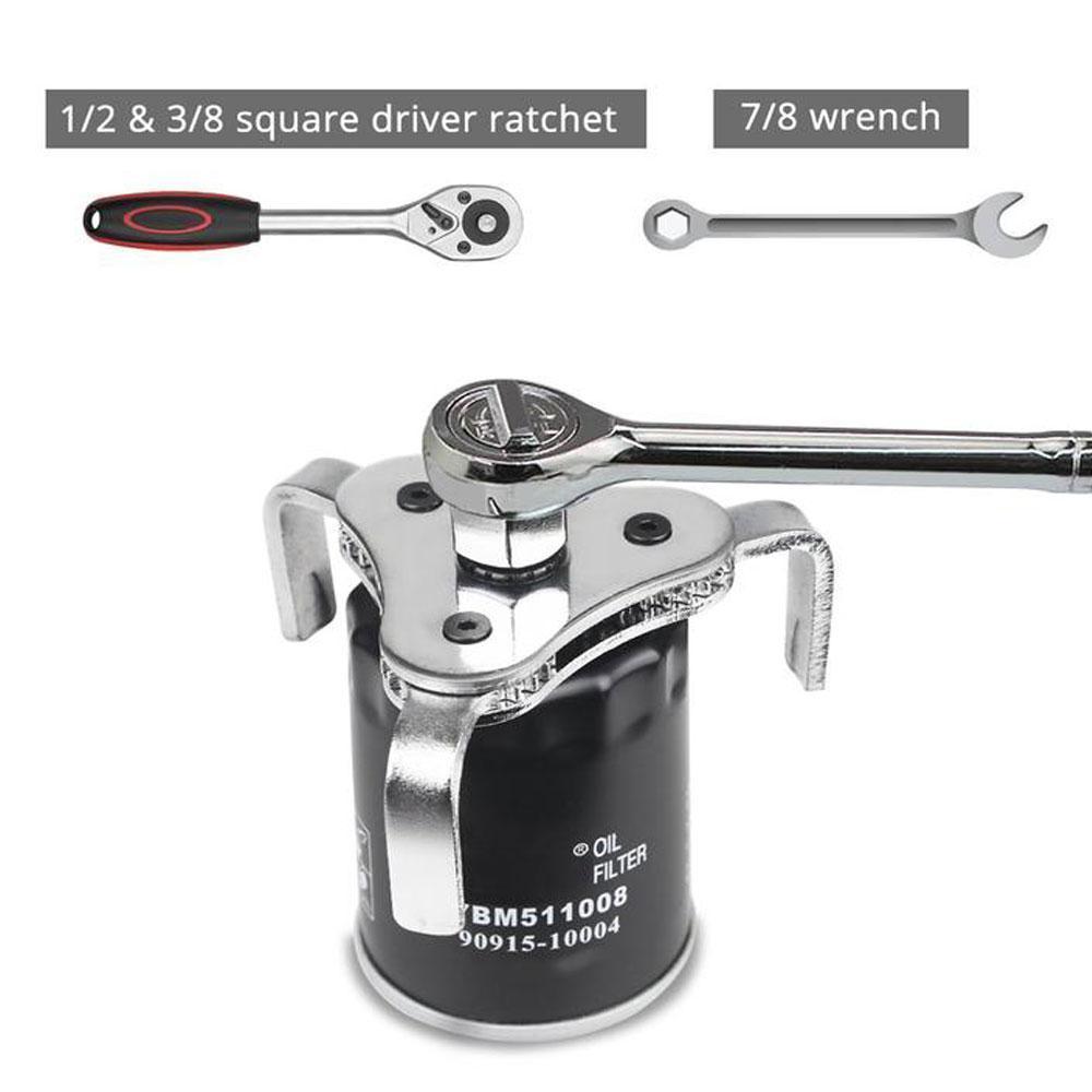 - Adjustable Fit: The oil filter wrench can remove the oil filter from 2-1/2 inch to 4.5 inch (55mm-115mm) ,fit 1/2 & 3/8 inch square driver ratchet or 7/8 inch wrench which can remove various models of vehicles.