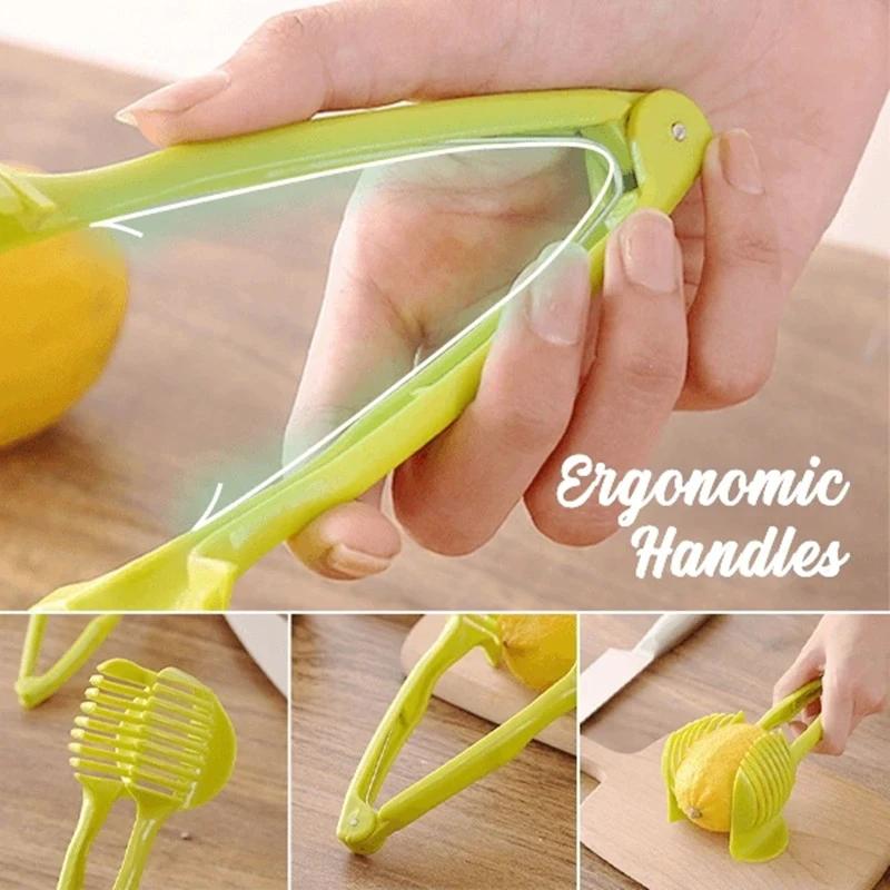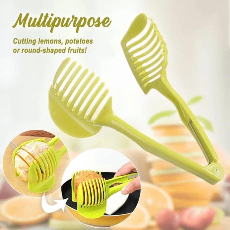 It can be used for cutting lemons, potatoes, or round-shaped fruits and vegetables quickly! -