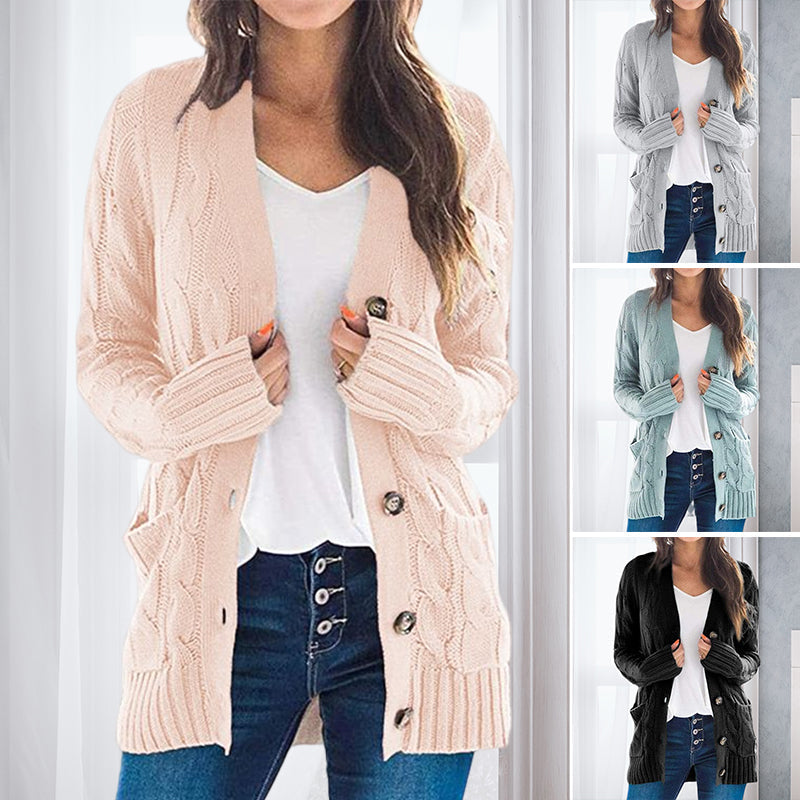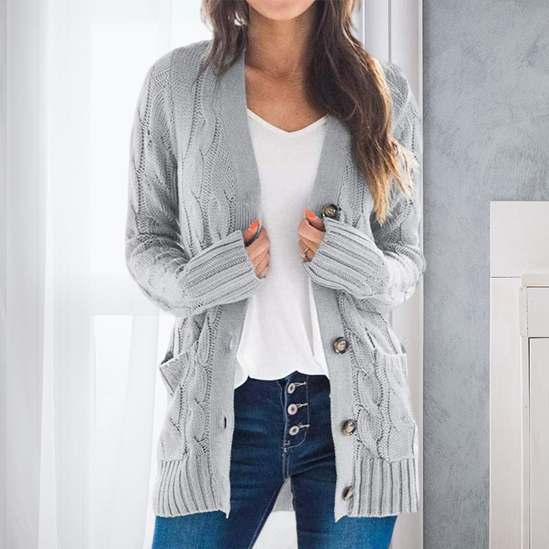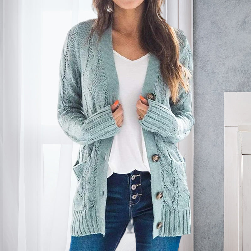 • Load image into Gallery viewer, V Neck Long Sleeve Casual Cardigan Jacket