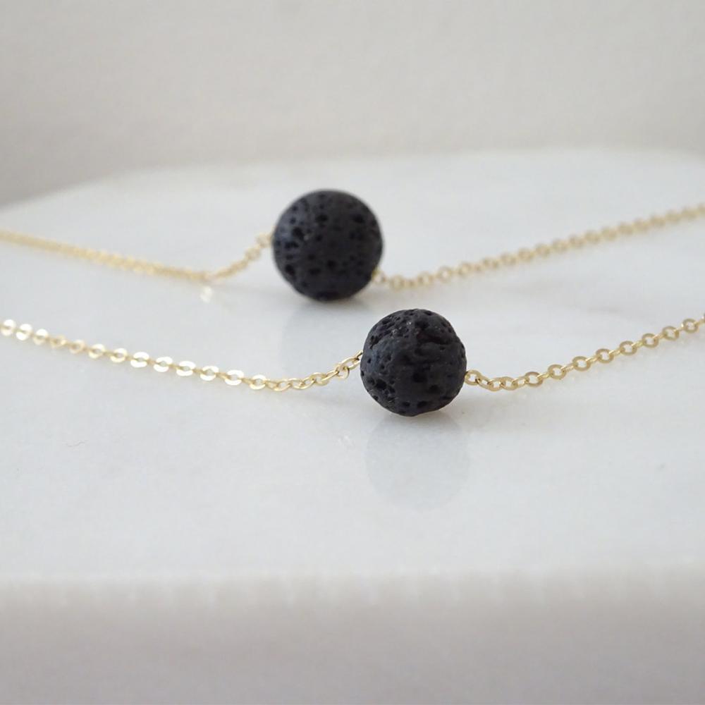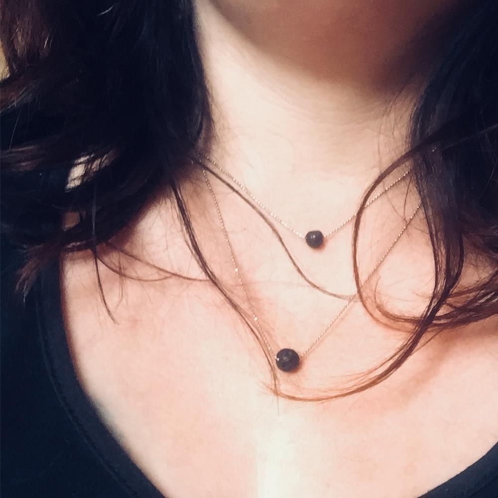 ♥Unique Design♥ ESSENTIAL OIL NECKLACE,Dainty gold/silver toned color necklace with black lava rock beads.
