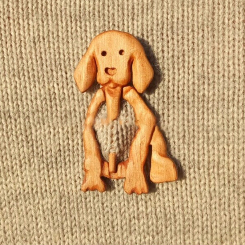 - 1 * Brooch Pin with Wooden Animal Pattern