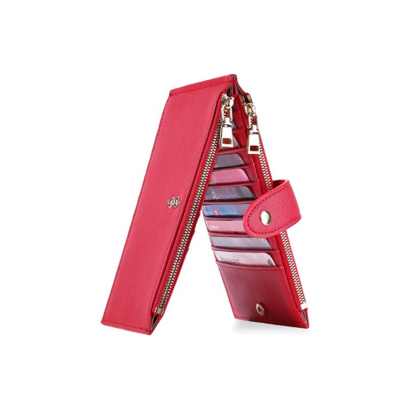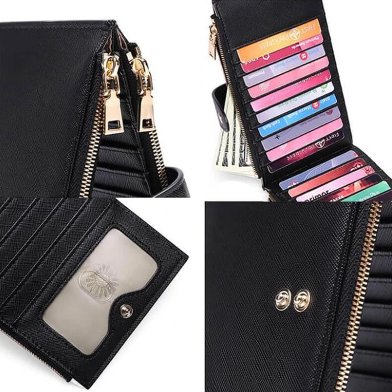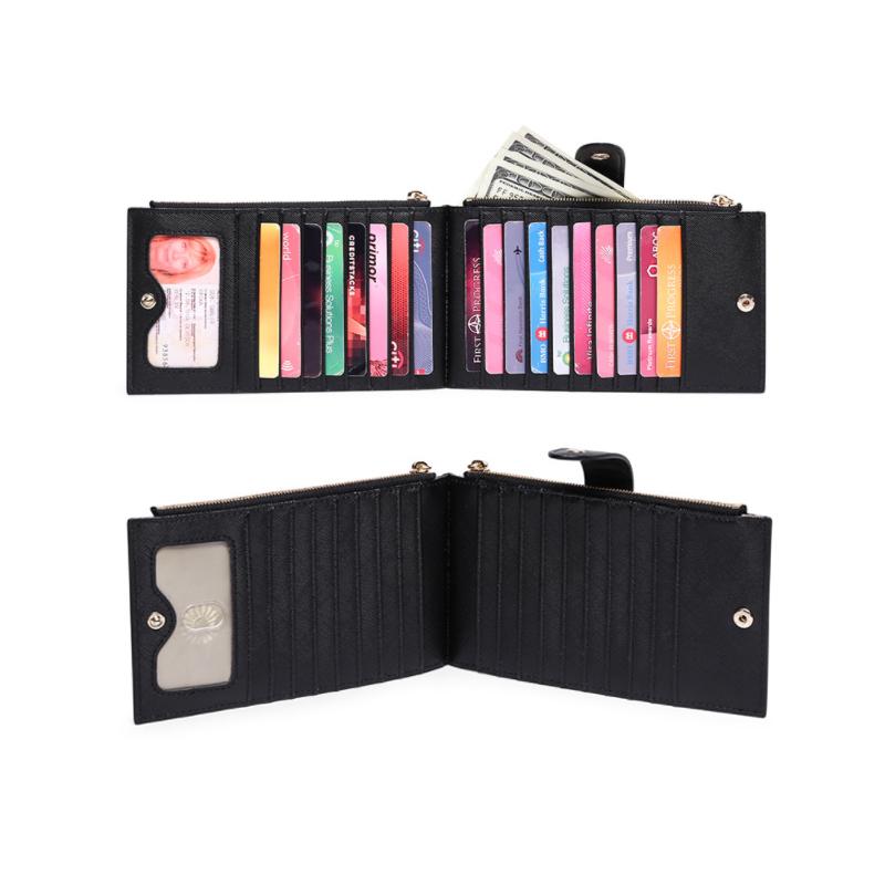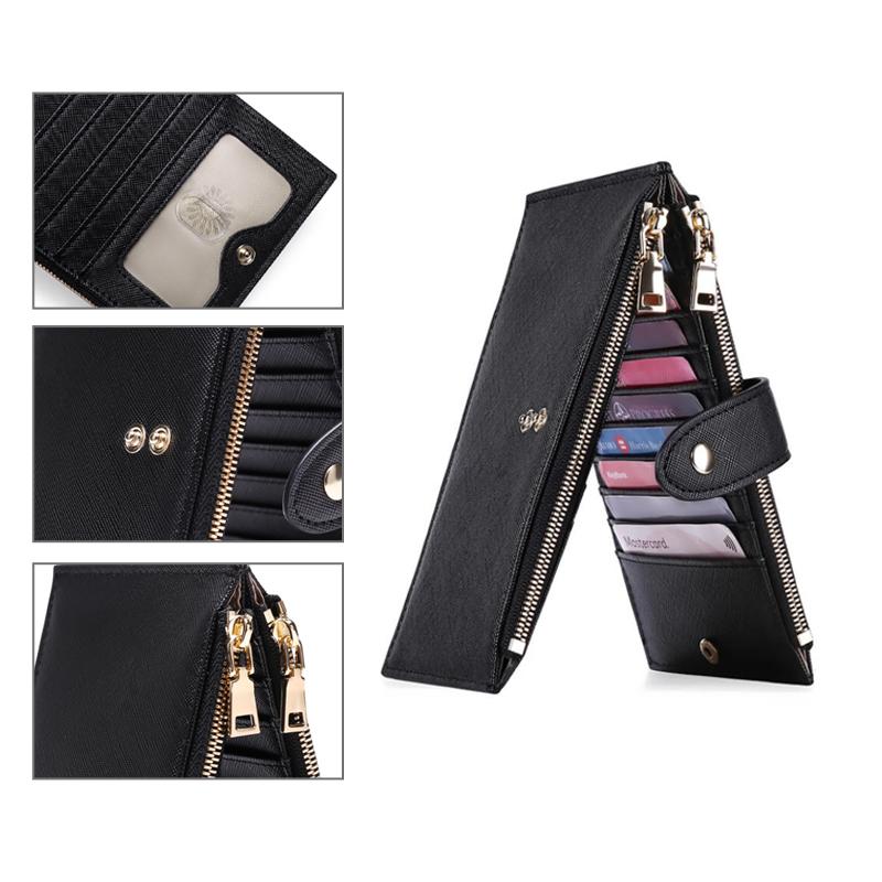 - Big storage space: With 18 card slots, 1 document window and 2 banknote depots, your credit cards, business cards, cash and ID cards or driver's licenses can be organized in an orderly manner.