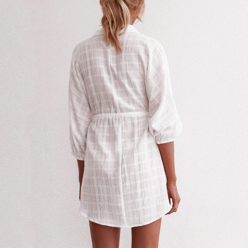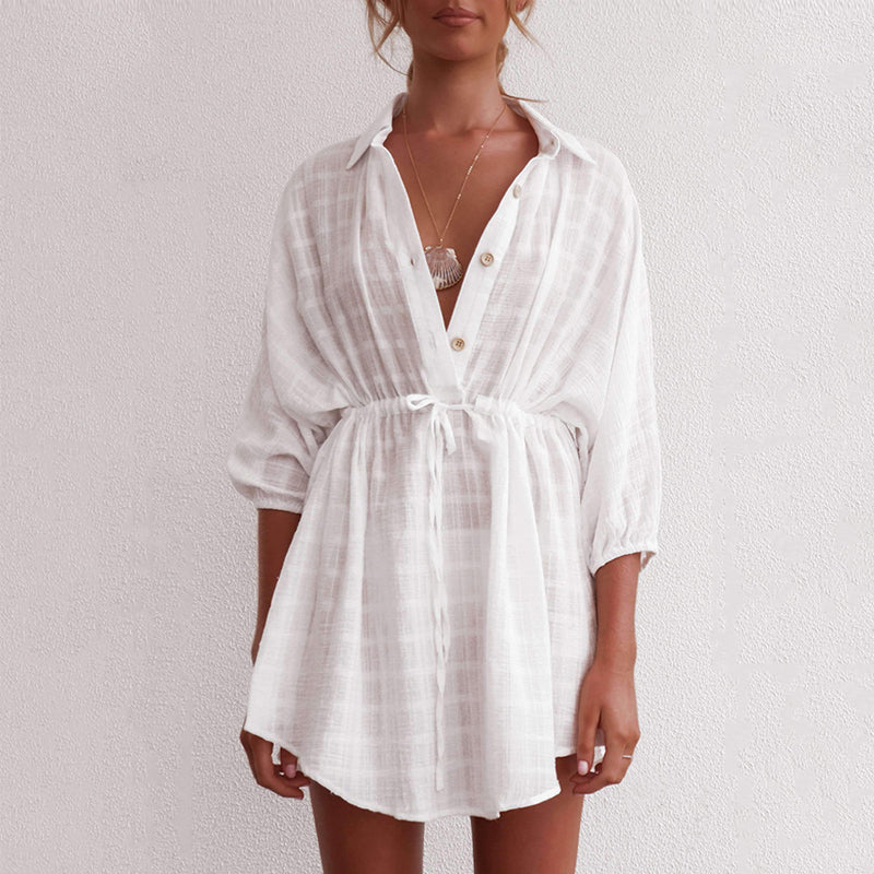Lapel Single-Breasted Pumped Beach Dress