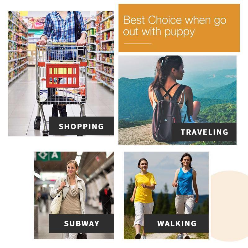 - A small strap on the inside of the bag will prevent the dog from jumping out. A sliding link will adapt the closure of the opening to the width of the dog's neck.