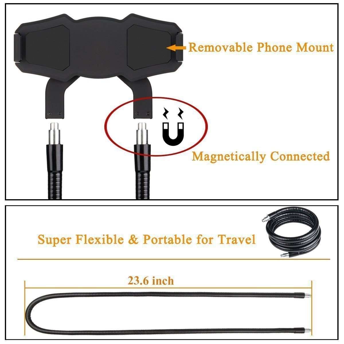 Ergonomic Design, Composed of base mount and aluminium magnesium tube, its design complies with ergonomic principle. Provide proper distance between user's eyes and smart phone when hanging on user's neck to avoid glares and neck strain.