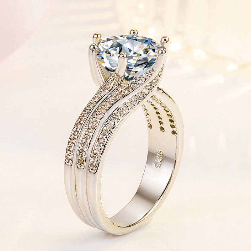 Package: 1 * Classic Twisted Full Diamond Six Claw Ring