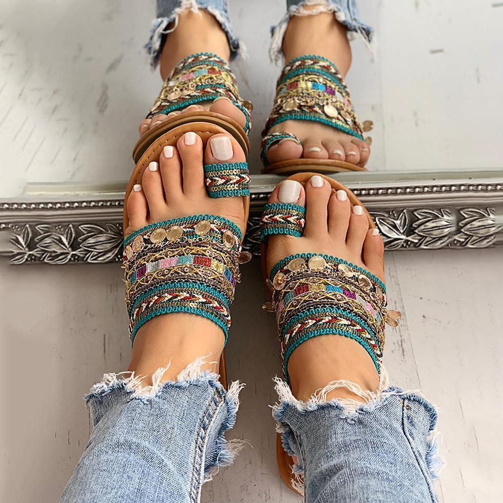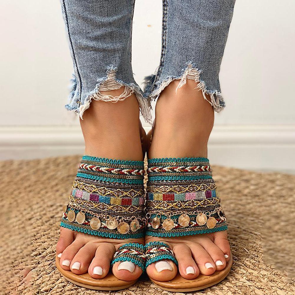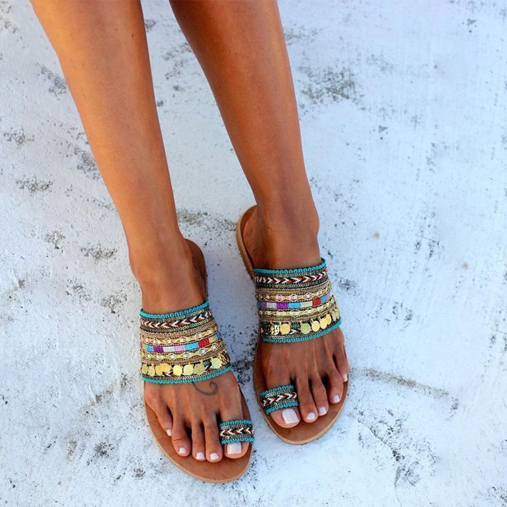 • Load image into Gallery viewer, Ethnic boho style toe ring sandals