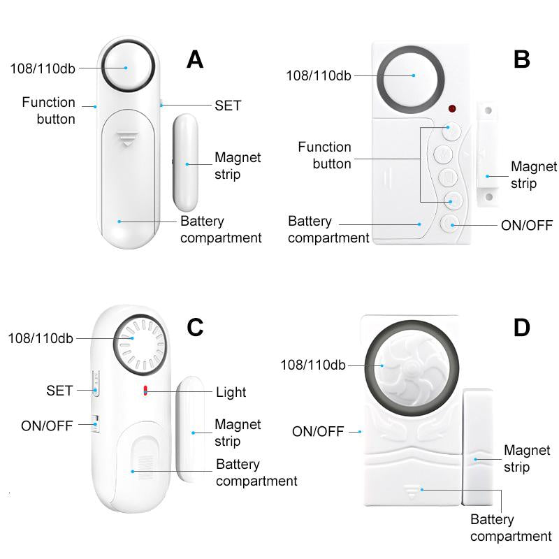 - Window alarm sensors with 4 modes -- Not only on/off setting, but also General Alarm, Constant Alarm, Closing-door Alert (Time Delay) and Doorbell Mode. You can easily set the mode according to your need.