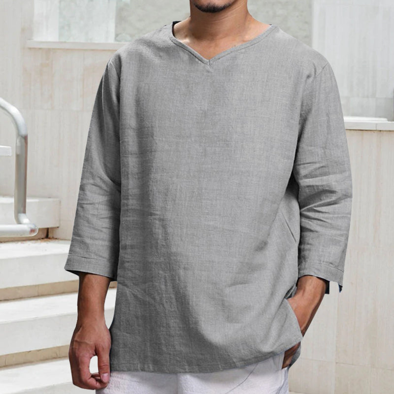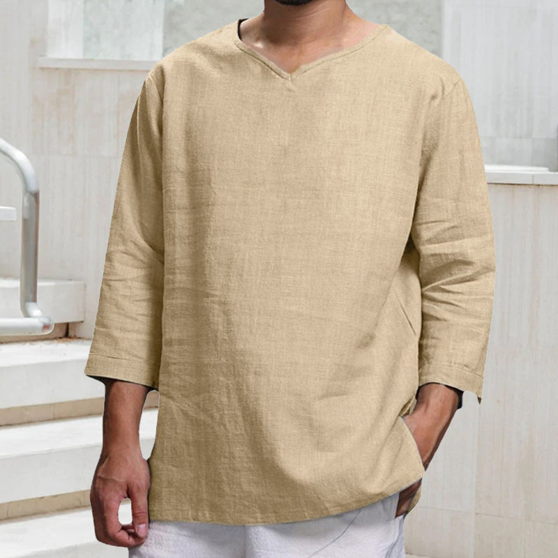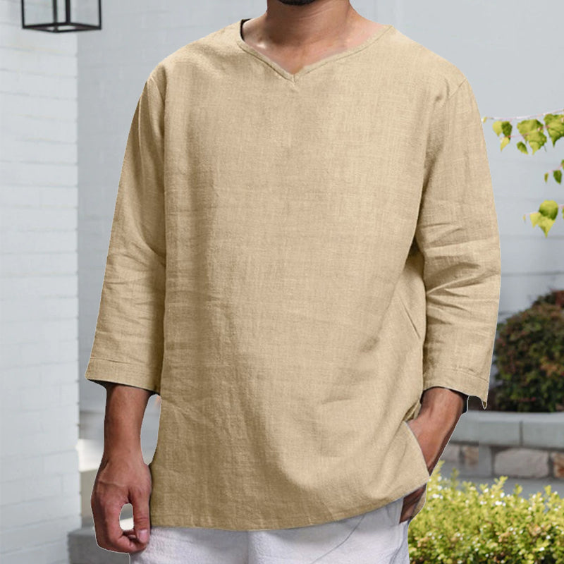 Men's Long-sleeved V-neck Linen Loose T-Shirt