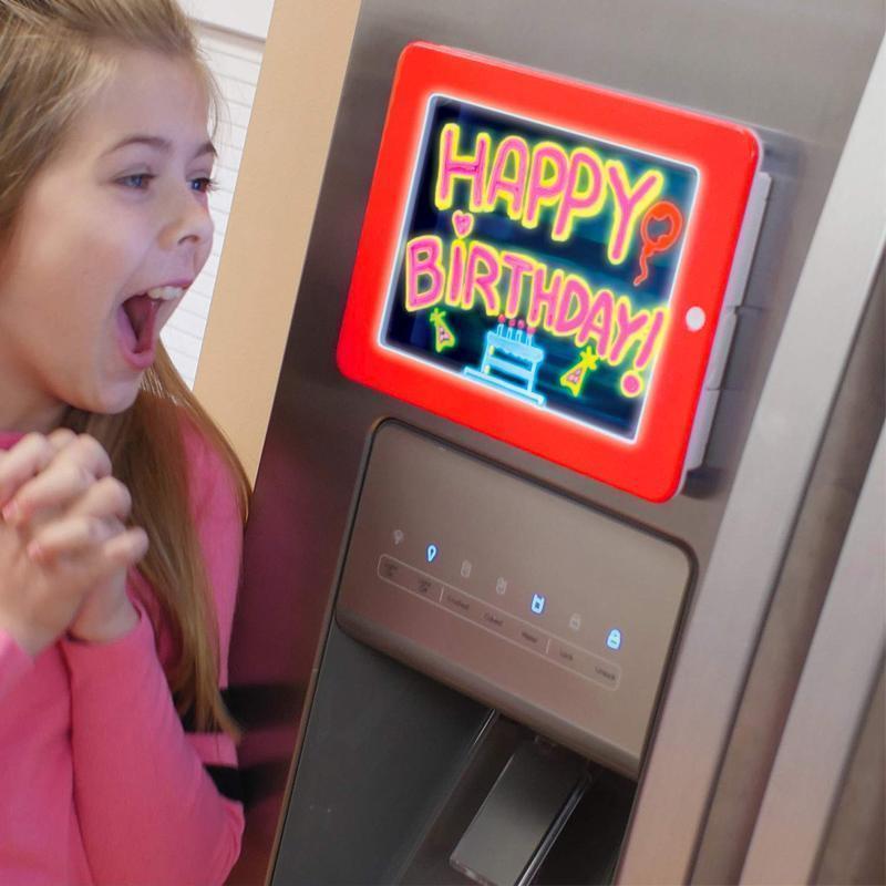 - 🎨【2 in 1 Drawing Pad/Photo Frame】A dual-use, both as a canvas doodle, but also as a decorative photo frame,There will be different colors of light on the tablet, which makes the graffiti more vivid and interesting. Each time you press the button, you change the color of the light. Finally, you can flash several buttons at the same time.