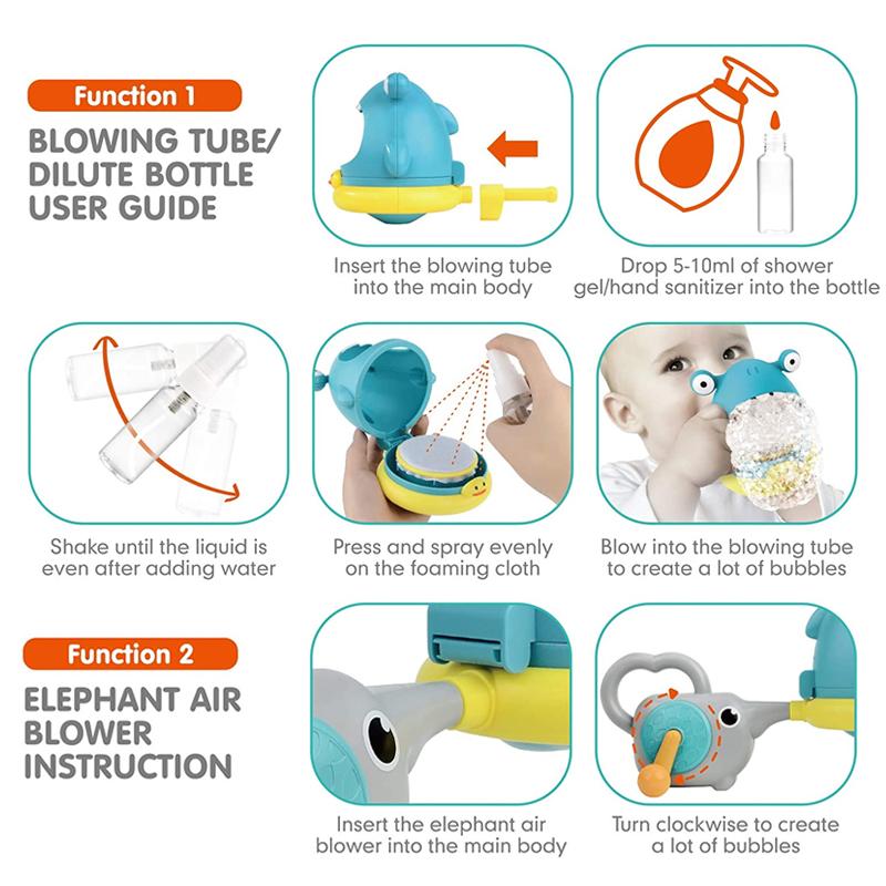 - Happy Parent-Child Moment - Still worrying about children not willing to take a bath? Let the premium bubble bath Toy change that with a bubble-blowing cute bath toy! Our kids will start looking forward to bathtime. It encourages parent-child bonding at the same time.