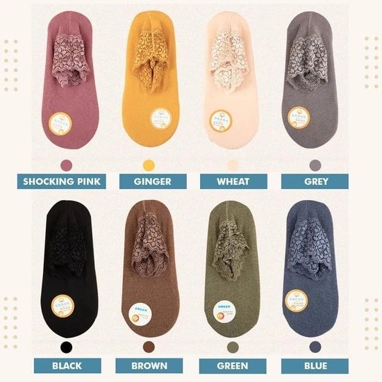 - 🌼 Good Match For Most Occasions - The lace edge design is sweet and fashionable, and it is also fashionable in cold winter. The bottom of the socks has a non-slip design, so bare feet are not afraid of wrestling.