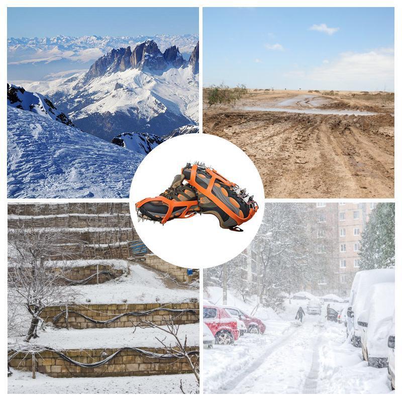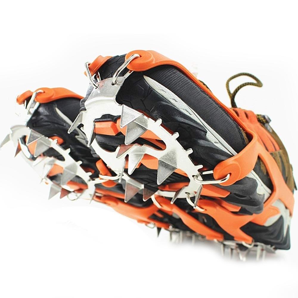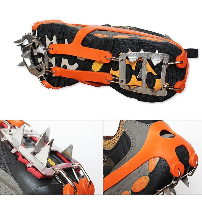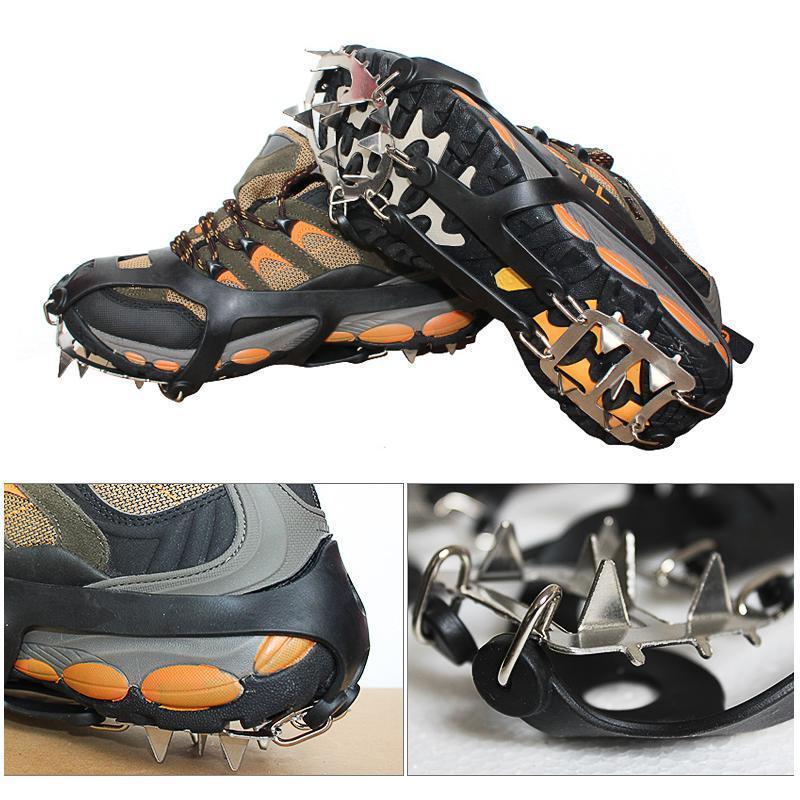 Hinged plate flexes with the sole of the boot, securely attached to your footwear & these slip-on spikes can dig into all types of terrain ice, packed snow, wet rocks, concrete.